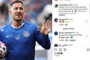 阿扎尔写道:回家并见到切尔西大家庭的成员总是很开心,感谢你们的热烈欢迎!