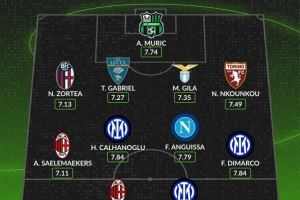 中场:萨勒马科尔斯(米兰)、恰尔汗奥卢(国米)、安古伊萨(那不勒斯)、迪马尔科(国米)